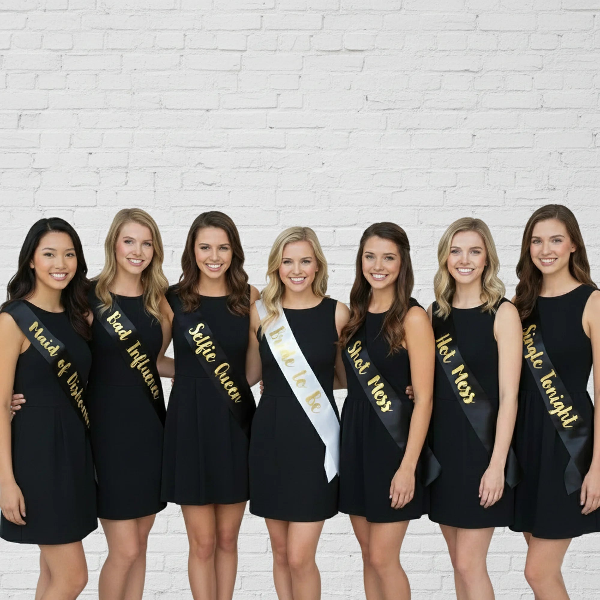Crafted from smooth premium satin, each sash drapes beautifully and can be personalized with names, titles, or wedding-themed phrases. The crisp, high-quality print adds a luxurious touch, ensuring your squad looks perfectly coordinated in every picture. Soft, lightweight, and comfortable, these sashes elevate the party vibe while becoming a keepsake your bridal squad will cherish long after the event.
